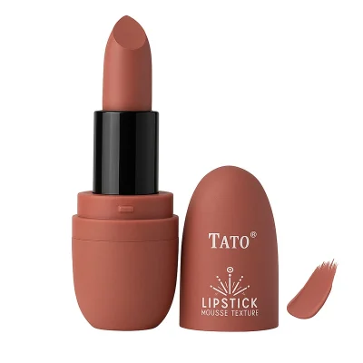 رژ لب جامد تاتو شماره 02 با بافت موس‌مانند و رنگدانه‌های غلیظ، جلوه‌ای مات و مخملی روی لب‌ها ایجاد می‌کند.