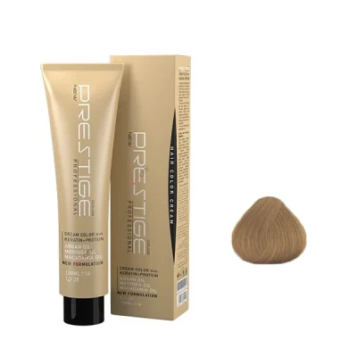 رنگ مو نیو پرستیژ کالر شماره 8.37 پرستیژ حجم 120 میلی لیتر رنگ کاراملی طلایی خیلی روشن