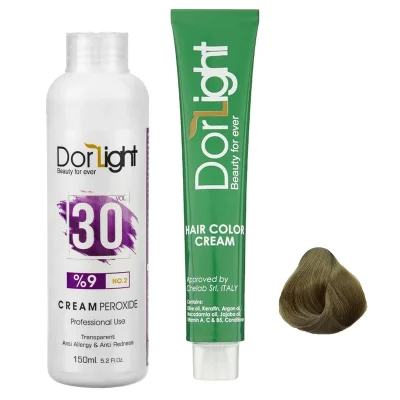 رنگ مو دور لایت شماره 7.52 حجم 100 میلی لیتر رنگ بلوند عسلی به همراه اکسیدان دور لایت کد 2 نه درصدی حجم 150 میلی لیتر