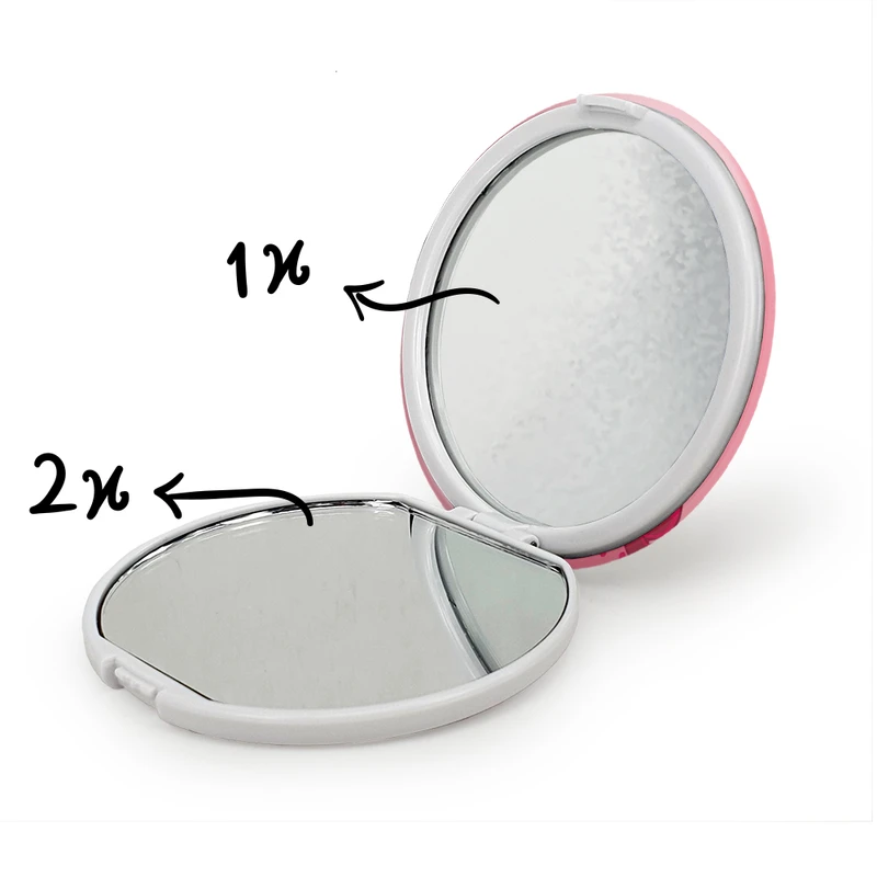آینه های جیبی خندالو مدل تاشو، از جنس پلاستیک فشرده ABS تولید شده و به رنگ سفید می باشد. یکی از آینه ها ابعاد واقعی را نشان داده و دیگری با قابلیت بزرگنمایی، جزئیات را بهتر نمایش می دهد.