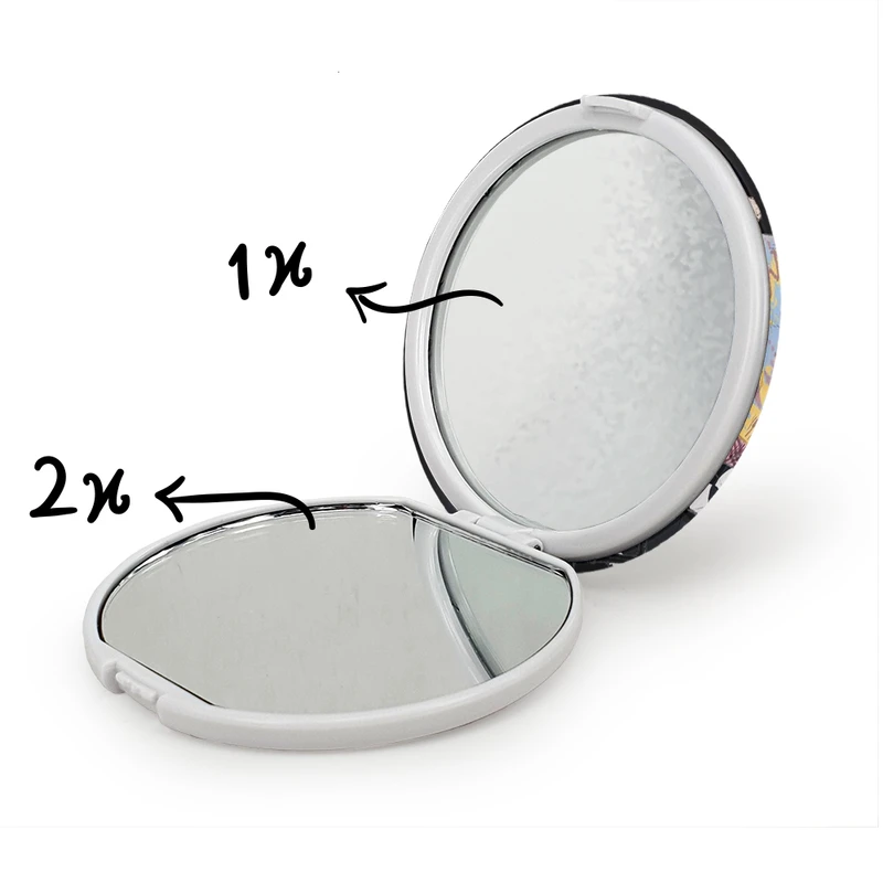 آینه های جیبی خندالو مدل تاشو، از جنس پلاستیک فشرده ABS تولید شده و به رنگ سفید می باشد. یکی از آینه ها ابعاد واقعی را نشان داده و دیگری با قابلیت بزرگنمایی، جزئیات را بهتر نمایش می دهد.