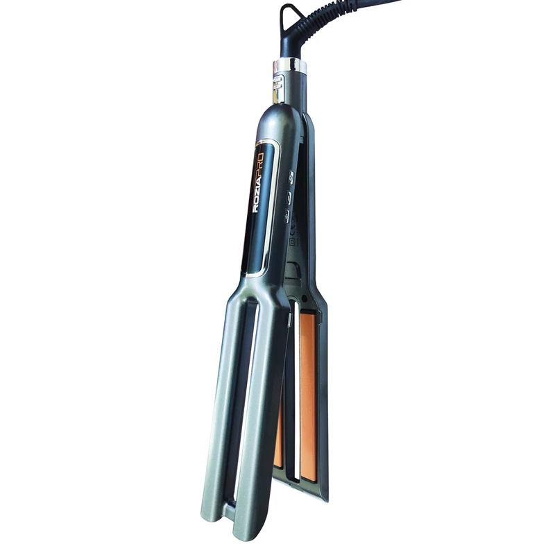 اتو موی 4 صفحه روزیا پرو مدل HR827 یکی از جدیدترین تکنولوژی ساخت در اتو موها است. در این اتو مو به جای 2 صفحه از 4 صفحه باریک با فاصله از هم استفاده شده است که سرعت اتو کشی و قابلیت صاف کردن موها را افزایش می دهد. صفحه های این اتو مو از جنس سرامیک و به صورت سه بعدی ساخته شده اند که این امکان را میدهد برای حالت دهی به موها نیز قابل استفاده باشد. دمای در این دستگاه از 450 تا 950 درجه فارنهایت در 11 حالت مختلف قابل تنظیم است و به کمک صفحه نمایشگر می توان دمای انتخاب شده را مشاهده کرد. این اتو مو در کمتر از 30 ثانیه کاملا داغ شده و در 90 ثانیه به حداکثر دمای خود میرسد. همچنین سیستم خاموشی خودکار در این اتو مو باعث می شود در صورت عدم استفاده به مدت 60 دقیقه به طور خودکار خاموش شده تا از حوادث احتمالی جلوگیری شود. از دیگر مزایای این اتو مو به چرخش 360 درجه خروجی سیم ، سیم بلند 2 متری و قفل صفحه می توان اشاره کرد. همراه این محصول دو عدد گیره نگهدارنده مو و یک عدد شانه مخصوص اصلاح در یک بسته بنی زیبا دریافت خواهید کرد.