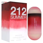 یکی از دو نسخهی محدود معرفیشده از مجموعهی 212، در سال 2013 ساخته شده است. این عطر زنانه «212 سامر» (212Summer) نام دارد. 212 سامر با حجم 60 میلیلیتر بهعنوان یک ادو تویلت دمدستی مناسب است. این 212 بوی شیرین و خنکی دارد و برای فصول بهار و پاییز، بهترین پیشنهاد بهحساب میآید. بطری این عطر بسیار خوشدست بوده و بهخوبی در دست بانوان جای میگیرد. روی بطری، نشان تجاری کارولینا هررا با رنگ سفید دیده میشود. پس از اسپریکردن کارولینا هررا 212 Summer روی پوست و محل نبضتان متوجه بوی لیمو، نارنج و پرتقال ماندارین خواهید شد. این نت شیرین و مرکباتی، شادی و طراوت را به شما منتقل میکند. پس از مدتی، این نتهای آغازی جای خود را به نتهای میانی خواهند داد. نتهای میانی از ترکیب گل یاسمین، یلانگ یلانگ و تمشک ساخته شدهاند. بوی این ترکیب گلی و میوهای، انرژی مثبت و نشاط بالایی را در شما ایجاد میکند. در ادامه و با گذشت مدتزمانی طولانی، نتهای پایانی از راه رسیده و جای نتهای میانی را میگیرند. این نتها از زعفران، عنبر، چوب و مشک ساخته شدهاند. بوی این عناصر چوبی، آرامش و تعادل روحی و جسمی را به شما منتقل میکند. خرید عطر کارولینا هررا 212 Summer با توجه به بوی تند و خنک، حجم 60 میلیلیتری، بطری زیبا و خوشدست و ماندگاری بالایش برای شما و کسی که این عطر را از شما هدیه میگیرد، بسیار خوشحالکننده خواهد بود.