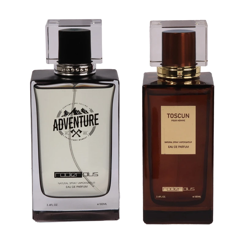 ادو پرفیوم مردانه رودیر پلاس مدل Toscun با رایحه تلخ حجم 100 میلی لیتر به همراه ادو پرفیوم مردانه رودیر پلاس مدل Adventure با رایحه خنک حجم 100 میلی لیتر