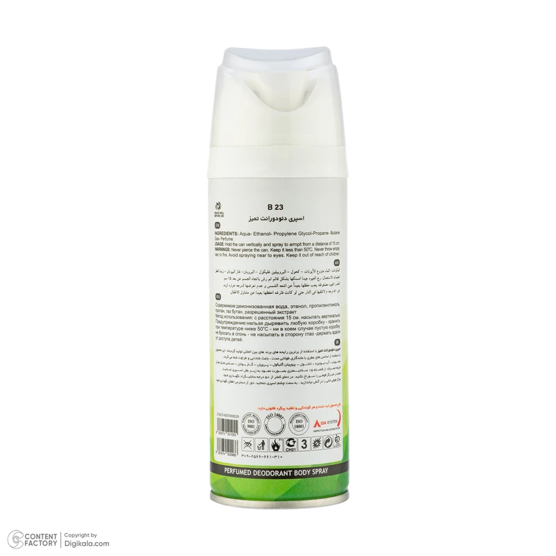 اسپری بدن تمیز مدل Tour scental با استفاده از برترین رایحه های برندهای بین المللی تولید گردیده .این محصول با استفاده از اسانس های عطری سوئیس با ماندگاری مناسب باعث شادابی و طراوت شما می گردد. |