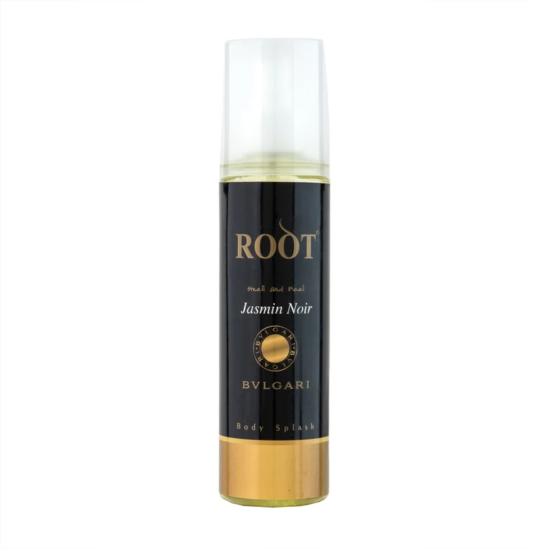 بادی اسپلش زنانه مدل Bvlgari Jasmin Noir روتROOT که محصولی مایع و رقیق هستند که باعث خوشبو شدن پوست بدن می‌شوند. این محصول دست کمی از عطر و ادکلن‌ ندارد، البته ماندگاری کمتری نسبت به آن‌ها دارد. بادی‌اسپلش‌های روت باعث خوشبو شدن پوست بدن می‌شوند. رایحه حاصل از آنها برخلاف عطرها، بسیار سبک و ملایم است به همین دلیل اعتماد به نفس را بالا برده و همچنین آبرسان قوی پوست است و لطافت و جوانی پوست بدن را حفظ می کند. همچنین این محصول را می توان روی ساقه موها جهت خوشبو شدن و آبرسانی به موها اسپری کرد.