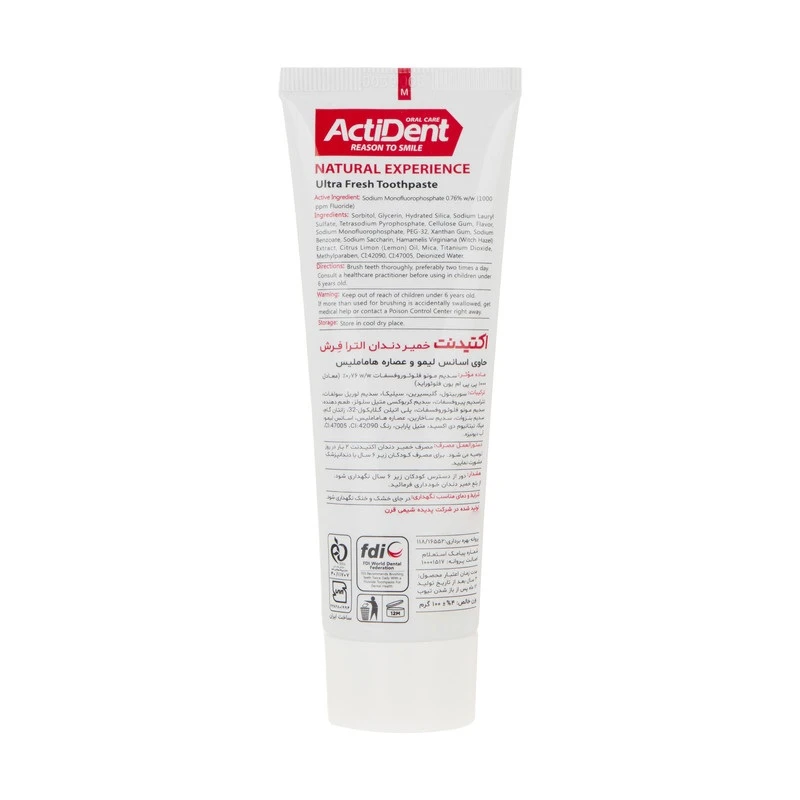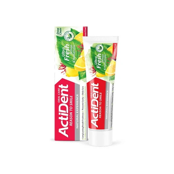 خمیردندان الترا فرش اکتیدنت حاوی عصاره لیمو و هاماملیس است. ایده اصلی این محصول استفاده از طعم جذاب لیمو و خواص منحصر به فرد هاماملیس در بهبود سلامت لثه ها بود. خمیر دندان الترا فرش را مناسب کسانی که یک خمیر دندان برای استفاده روزمره و مراقبت عمومی از دهان و دندانشان با طعم متفاوت می خواهند پیشنهاد می کنیم.