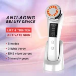 حالت RF LED نور سبز انرژی سلولی را پر می کند، متابولیسم پوست را تسریع می کند، پوست را فعال می کند و پوست را روشن و سفید می کند . حالت EMS UP ماساژ میکرو جریان EMS گردش خون را بهبود می بخشد، خاصیت کشسانی و استحکام پوست را افزایش می دهد، پوست شما را در بهترین حالت بهینه می کند. استفاده با نور آبی، شادابی سبوم را کاهش می دهد، آکنه و جوش را از بین می برد، پوست چرب را بهبود می بخشد . حالت eye care خستگی چشم را از بین می برد، کرم یا اسانس را به عمق پوست هدایت می کند و باعث تقویت آن می شود. جذب، چشم شما را بسیار جذاب می کند.