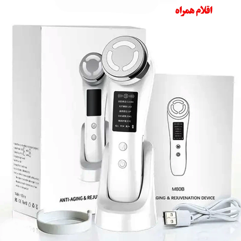 دستگاه ضد پیری و جوانسازی مدل M80B یک دستگاه با کیفیت بالا میباشد. استفاده از این دستگاه نیازمند صبر و تداوم در استفاده میباشد . این دستگاه زیبایی صورت با جریان میکرو EMS (یون های گالوانیک)، لرزش، ماساژ گرم، نور قرمز، سبز و آبی است که می تواند پاکسازی عمیق، جوانسازی بهتر و لیفت صورت را محقق کند. میکرو جریان EMS (یون های گالوانیکی): از اصل ملایم ترین جریان ضربه ای استفاده می کند . حالت ویبره این محصول روش ارتعاشی فیزیکی و تحریک الکتریکی را برای افزایش کشش و متابولیسم سلولی اتخاذ می کند. ماساژ گرم جذب محصولات مراقبت از پوست را بهبود می بخشد تا بافت پوست، پوست نازک کشیده پر از خاصیت ارتجاعی باشد. نور قرمز: 640 نانومتر – نور قرمز 650 نانومتری در عمق درم، گردش خون را برای کاهش سلول های جدید پوست افزایش می دهد.چین و چروک، سفت کردن پوست و تشویق تولید نور سبز: طول موج 530 نانومتری به پوست 1 تا 2 میلی متر نفوذ می کند، اریتم پوست را به طور موثر درمان می کند، قرمزی و تورم را تسکین می دهد، رنگدانه را جایگزین می کند، متابولیسم نوسازی کوتیکول را افزایش می دهد. نور آبی طول موج 415 نانومتر دارای اثر ضد التهابی سریع است که باعث کاهش سبوم می شود. شادابی، آکنه و جوش را از بین می برد، پوست را بهبود می بخشد. حالت CLEAN احساس گرما به باز شدن منافذ پوست کمک می کند، به پاکسازی عمیق برای درک اثر پالایش منافذ، لکه های آکنه و رفع تیرگی پوست کمک میکند. نور قرمز محصولات مراقبت از پوست را به عمق پوست هدایت می کند، خاصیت ارتجاعی سلولی را فعال می کند و چین و چروک ها را محو می کند.