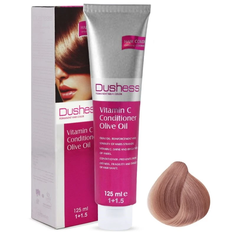 رنگ موی دوشس، یک رنگ موی دائمی است که قادر است رنگ موجود موها را تغییر داده، تیره تر یا روشن تر نماید. قدرت پوشش رنگ موی دوشس برای موهای خاکستری عالی بوده و در هر شرایطی کاملا پایدار است. به سبب دارا بودن غلظت و تراکم بالای رنگدانه قادر است تارهای سفید و خاکستری مو را پوشش دهد و رنگی با جلوه کاملا طبیعی و زیبا بیافریند. پیگمنت ها یا رنگدانه های موجود به سبب خلوص بالا و کوچک بودن ذرات آن با کمی باز شدن کوتیکول به راحتی به داخل مو به صورت عمیق نفوذ میکند و با اتصال قوی آن به درون تارهای مو محبوس میگردد و علاوه بر ایجاد رنگ های یکنواخت و پوشش 50% تا 100% باعث طولانی تر شدن دوام رنگ مو میگردد. پایین بودن میزان آمونیاک رنگ مو ضمن عملکرد سریع به ساختار مو آسیب نمیرساند و بنابر این از موخوره خشکی و شکنندگی تارهای مو جلوگیری میکند. به سبب دارا بودن روغن زیتون و ویتامین E، امگا 6، امگا 3 و اسید های چرب موجود در روغن گیاهی و توانایی جذب آن در ساختار مو و تغذیه آن، علاوه بر براقیت و نرمی موها استحکام تارهای مو را تقویت می سازد. با استفاده از نرم کننده و ترکیبات سیلیکونی و ویتامین C در این رنگ مو ضمن سالم نگه داشتن مو و ایجاد حالت ابریشمی در نهایت رنگی براق و درخشان ایجاد میشود که ترکیبی است از انعکاس نور و شکست نور از روی ملانین طبیعی روشن نشده و پیگمنت های وارد شده به ساختار مو می باشد.