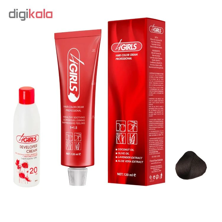 رنگ مو فور گیرلز حاوی روغن نارگیل، روغن زیتون، عصاره آکوورا و لاونر(اسطوخودوس)، کراتین و ویتامین C، با خاصیت نرم کنندگی زیاد سبب احیا مو های خشک و آسیب دیده از مواد شیمیایی شده و نرمی و لطافت موهاحفظ کرده و قدرت و پوشش زیاد بخصوص برای موهای سفید را دارد. رنگ موی فور گیرلز در تنوع 118 رنگ به بازار عرضه میشود. رنگ موی فور گیرلز در تیوپ 120 میلی لیتر بسته بندی شده که با 1/5 برابر اکسیدان (180 میلی لیتر) مخلوط میشود.