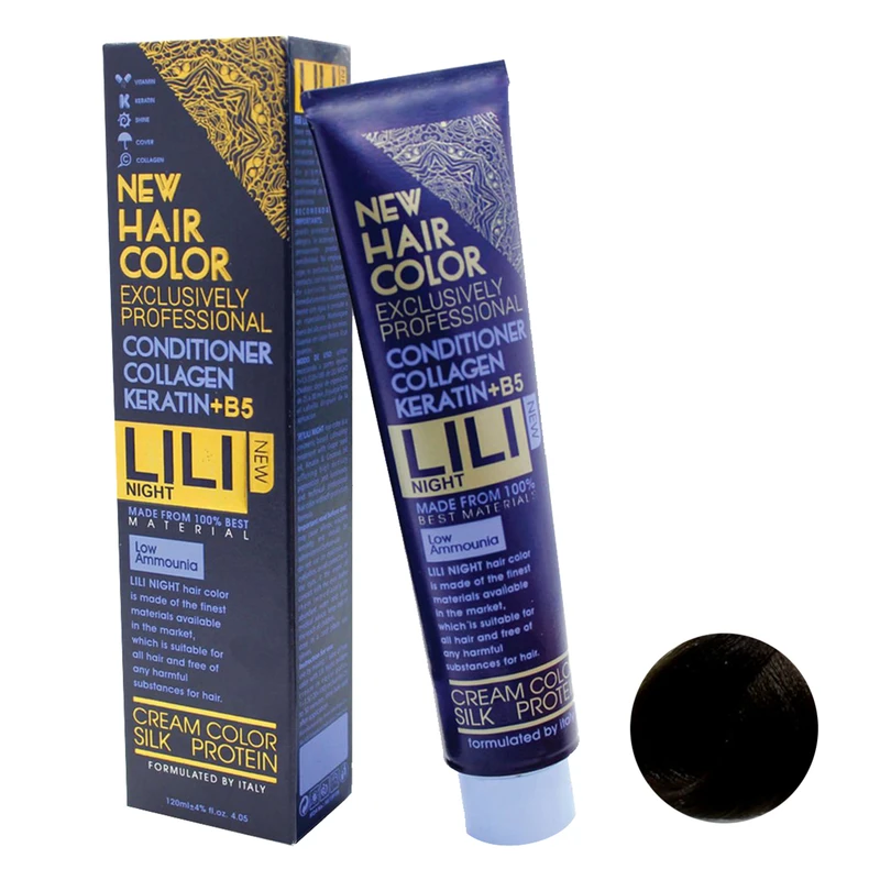 رنگ مو لی لی نایت رنگ مو دائمی است که قادر است رنگ موجود موها رو تغییر داده، تیره تر یا روشن تر کند. قدرت پوشش رنگ مو لی لی نایت در هر شرایطی کاملا پایدار است. رنگ مو لی لی نایت حاوی روغن آرگان، روغن هسته ی انگور، روغن آلوورا، ویتامین،کراتین برای نرم کننده و حالت دهنده ی مو با کاور بسیار بالا می باشد که باعث درخشندگی مو شده و از خشک شدن و شکنندگی مو جلوگیری می کند. حجم: 120 میل نسبت درصد ترکیب 1 به 1/5 میباشد رنگ مو لی لی نایت داری امونیاک بسیار پایین و کلاژن میباشد.