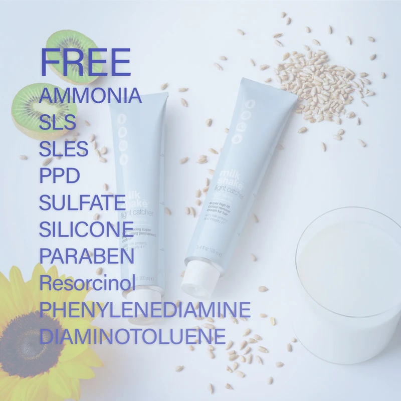 رنگ مو دائمی تخصصی میلک شیک فاقد آمونیاک و ضد حساسیت به واسطه کاهش وزن ملکولی و حجم ذرات فرمولاسیون ترکیبات موجود در این سری از رنگ مو جهت نفوذ به سطح کوتیکول و حتی کورتکس مو، میکرو ریزدانه های رنگ خود را در این لایه ها وارد، تثبیت و حفظ کرده تا یک پوشش یکنواخت، پایدار، مستحکم و کامل را ایجاد نموده و با بستن فولیکول سطح مو ضمن محافظت از رنگدانه‌های مو از تغییر رنگ، اسیب مواد شیمیایی، شستشو، تحدید و انواع اسیب مصون نگه می‌دارد. بیش از 7 سال تحقیق لابراتوری میلک شیک جهت دستیابی به فرمولاسیونی با حداکثر تاثیر، در کوتاهترین زمان، بدون هرگونه عوارض غنی شده با فیلر آرگان ریز ملکولی فعال، کنسانتره میکرو تصفیه شده مروارید آبالون، پروتئین قشاء بابونه، شیر، کتان، جوانه گندم، دانه افتابگردان، هسته انار، هسته انگور، پنبه، ابریشم، سویا، آرژنین، کلاژن و انواع مواد مورد نیاز ساختمان مو باعث شده تا علاوه بر ایجاد رنگی حرفه‌ای و با کیفیت که چشم هر بیننده‌ای را محسور شما خواهد کرد، عوارضی را برای ساختمان مو و ریشه مو در پی نداشته و مانع از اسیب ساختمان مو شود. ترکیبات فاقد آمونیاک، سولفات، سیلیکون، پارابن و دیگر مواد مضر موجود در آن هیچگونه اسیبی را متوجه ساختمان مو نکرده، باعث فرسودگی، سوختگی، خشکی، حساسیت، وزی، کدری، گره خوردگی، موخوره، دو یا چند شاخگی، ضعف و آسیب به ریشه مو نشده تا آن را برای موهای تحت انواع تراپی، کراتین، ضعیف، حساس و حتی افراد باردار نیز ایده آل نماید. کراتین سویا و بیش از 17 نوع پروتئین هیدرولیز شده به تامین اصلی ترین پروتئین تشکیل دهنده بافت مو پرداخته، ترکیبات رنگساژ مروارید، بابونه، هسته انار و انگور با کیفیت‌ترین رنگ مو را در عمیقترین لایه مو ایجاد کرده، پروتئین شیر، کتان و آفتابگردان نیز به نرم، صاف، درخشان، شفاف، خوش حالت سازی مو را حاصل دارد. ابریشم و پنبه با آبرسانی عمیق ساختمان مو، ضمن محافظت طولانی مدت از مو، موها را حجیم، لطیف، لخت، مستحکم و تقویت میکنند.
