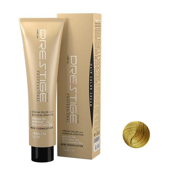 اگر به‌دنبال تغییر و تحول در ظاهر خود هستید با استفاده از رنگ مو می‌تواند این تغییر چشمگیر را در چهره‌تان ایجاد کنید. این محصول با حجم 120 میلی‌لیتر برای موهای نسبتا بلند در حد متوسط جوابگو خواهد بود. نیو پرستیژ کالر به شما امکان می‌دهد تا موهای سفید خود را با استفاده از این رنگ مو پوشش دهید. رنگ مو به مدت 8 هفته روی موهایتان ماندگاری دارد و اگر قصد دارید رنگ موهای خود را تغییر دهید، این رنگ با خاصیت ماندگاري منحصر به فرد و قدرت پوشانندگي بالا، ايجاد براقيت بر روي مو پس از مصرف، غنی شده توسط پروتئین، کراتین و ویتامین C،تنوع رنگی بالا جهت تامین سلیقه ی مصرف کنندگان، پیگمنت و رنگدانه های عمیق، پوشانندگی کامل موهای سفید و خاکستری، فاقد رنگ دانه قرمز، خاصیت ترمیم کنندگی و نرم کنندگی به شما کمک خواهد کرد. ماندگاري منحصر به فرد، قدرت پوشانندگي بالا و ايجاد براقيت برروي مو پس از مصرف،از ويژگي هاي برتر رنگ موي نیو پرستیژ کالر مي باشد. کراتین عمده‌ترین ماده‌ی تشکیل دهنده‌ی ساقه‌ی مو محسوب می‌شود اما این ماده بر اثر استفاده ی مداوم از مواد شیمیایی مانندرنگ، مش، فر، براشینگ‌های مداوم و حتی بر اثر استفاده از سشوار داغ از بین می‌رود و در نتیجه‌ی آن، موی سر هنگام شانه زدن می‌شکند. رنگ موی نیو پرستیژ کالربا دارا بودن ماده‌ی حیاتی کراتین، پادزهرِ این حالت را در بطن خود دارد، لذا شما با استفاده از این محصول فقط مویتان را رنگ نمی‌کنید بلکه موهایتان را تقویت نیز می‌کنید.