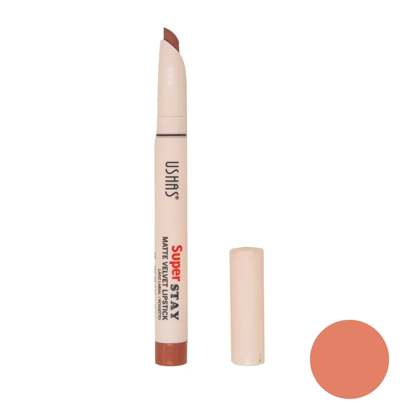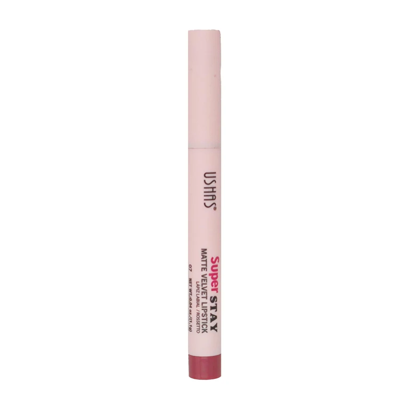 رژ لب جامد یوشاس (Ushas) مدل Super Stay یکی از انتخابهای جذاب برای افرادی است که به دنبال ترکیبی از رنگ زیبا، ماندگاری بالا و بافت مخملی هستند. این رژ لب با طراحی قلمی و بستهبندی صورتیرنگ، ظاهری مدرن و دلنشین دارد و استفاده از آن بسیار راحت و دقیق است. فرمولاسیون این محصول بهگونهای طراحی شده که پس از استفاده، پوششی یکدست و مات روی لبها ایجاد میکند و بدون ایجاد خشکی یا سنگینی، حس لطافت و سبکی را به لبها منتقل مینماید.