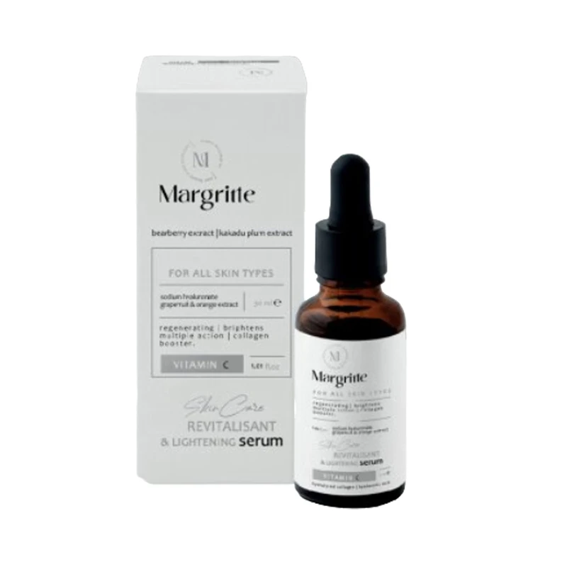 سرم روشن کننده، ضد لک و احیا کننده مارگریت بر پایه کمپلکس روشن کننده قوی آنزیم تولید ملانین را مهار کرده و با افزایش کلاژن سازی در پوست باعث احیای سلول های پوستی و بهبود لک های پوستی می شود.
