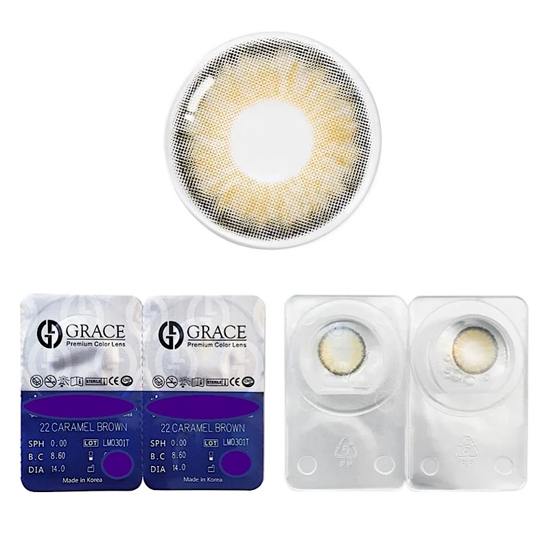 لنز رنگی چشم گریس GRACE شماره ٢١مناسب برای انواع چشم ها و دارای رطوبت کافی برای چشم می باشد. این لنزهای رنگی از کیفیت بسیار بالایی ساخته شده و دارای طراحی نازک و نرم، اما بسیار راحت هستند و این راحتی را برای شما تضمین می کنند. آبرسانی لنزهای رنگی گریس 42% می باشد که در بین لنزهای رنگی آرایشی بالاترین درصد رطوبت به حساب می آید و برای افرادی که چشمانی حساس و خشک دارند، ایده آل است و می تواند انتظارات مصرف کننده را فراهم کند. لنز رنگی گریس رنگ کراملی یکی از پر طرفدارترین رنگ های برند گریس می باشد. این لنزهای رنگی اکسیژن بالایی دارند و می توانند به راحتی اکسیژن را به چشمان شما انتقال دهند.