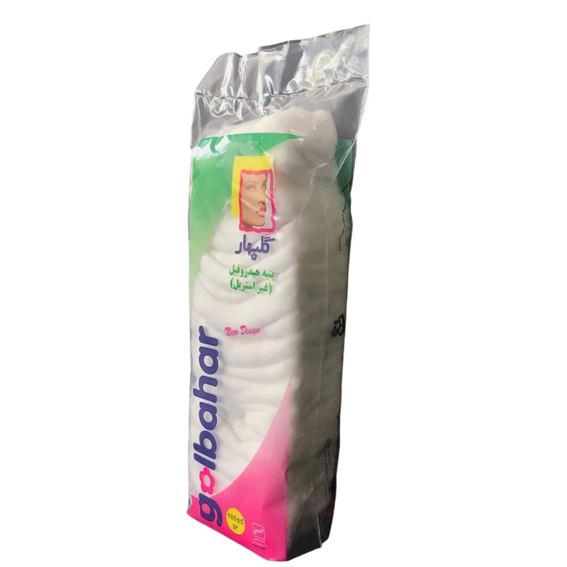 پنبه هیدروفیل گلبهار از الیاف مرغوب و پنبه 100 درصد طبیعی ساخته شده و جهت مصارف پزشکی، بهداشتی و آرایشی استفاده میشود. این محصول قابلیت بسیار بالایی در جذب آب، خون، مواد مترشحه از بدن و محلولهای ضدعفونیکننده مانند بتادین دارد.