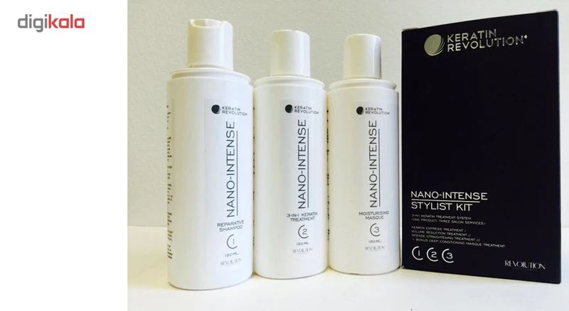 این نوع کراتین دارای 4 کیت مختلف درمانی می باشد. این کیتها در حجم و اندازه متفاوت می باشند. این کیتها با داشتن 3 بطری مختلف با شماره های 1، 2 ، 3 شامل یک بطری شامپوی آماده کننده موها برای پروسه کراتینه کردن، یک بطری کراتین نانو اینتنس ، و یک بطری ماسک مو کراتینه و مرطوب کننده برای مرحله