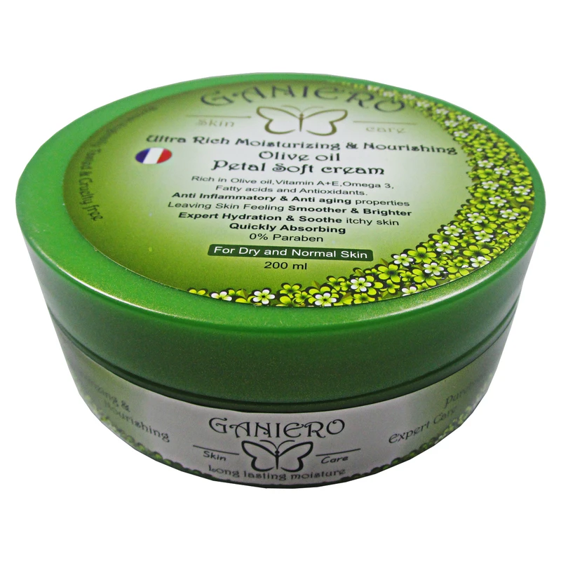 کرم مرطوب کننده دست و صورت GANIERO حاوی روغن زیتون . کرم مرطوب کننده گانیرو سرشار از ویتامین E و آنتی اکسیدان ها با فرمولاسیون قوی خود تاثیر بسزایی در ترمیم پوست های خشک و آسیب دیده دارد و می تواند سلول های پوست را بازسازی و پوست را نرم و درخشان سازد. همچنین این کرم با دارا بودن مقادیر زیادی از روغن زیتون التهابات پوستی نظیر آفتاب سوختگی ، سوزش ،زخم، خشکی و زبری را بهبود میبخشد و خاصیت جوانسازی برای پوست را اعمال میکند. (این کرم می تواند گزینه ی بسیار مناسبی برای پوست های خیلی خشک و آسیب دیده باشد) این محصول تحت لیسانس کشور فرانسه می باشد.