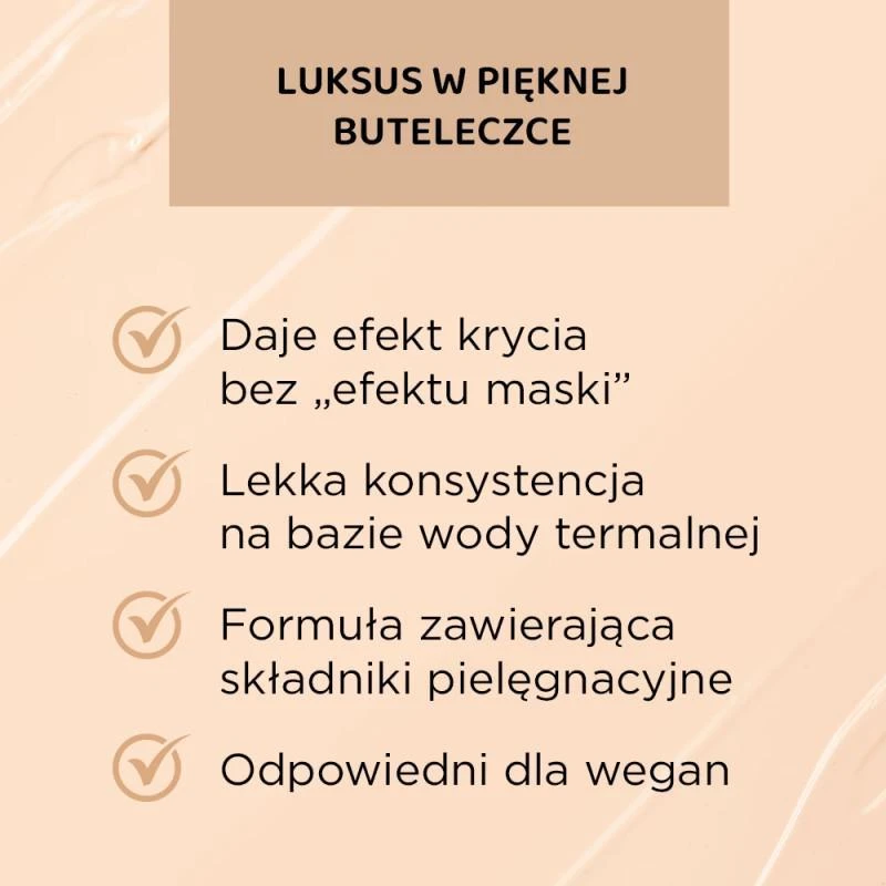 فونداسیون مجلل Eveline یک چهره بی عیب و نقص 24 ساعته را فراهم می کند. این لوازم آرایشی کاملاً با سایه و ساختار پوست سازگار است. بافت سبک و بدون چربی آن به راحتی پخش می شود و پوشش کامل را بدون اثر ماسک تضمین می کند. فرمول غنی با آب حرارتی و اسید هیالورونیک، میکروبیوم پوست را تغذیه، مرطوب و محافظت می کند. فونداسیون صورت Eveline تنها پس از 10 روز، پوست را به طرز محسوسی صاف تر و انعطاف پذیرتر می کند